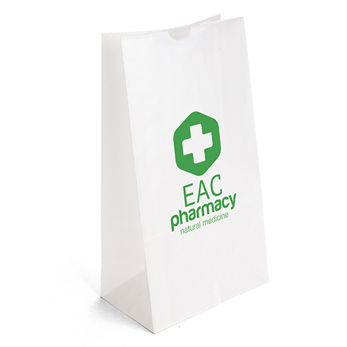 These durable paper bags feature a serrated top that can be folded for closure, as well as a side gusset. SOS Bags are perfect for holding retail, pharmacy, and newsstand purchases. Available in white or recycled brown kraft paper colors and three sizes. Brown kraft paper is made with 100% recycled material, 80% of which is post-consumer contentImprint Details