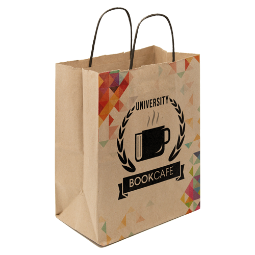 8.5" x 10.25" x 5" Full Color Natural Black Handle Shopper Paper Bags