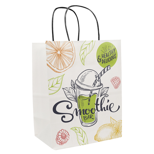 8.5″ x 10.25″ x 5″ Full Color White Black Handle Shopper Paper Bags