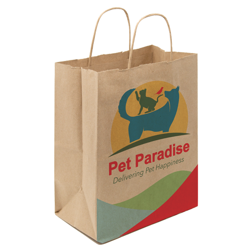 8″W x 10.25″H with 5″ Full Color Natural Handle Shopper Paper Bags