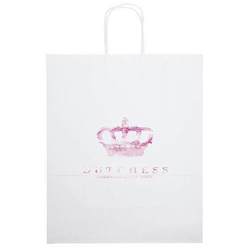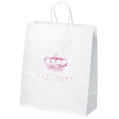 This popular white kraft-paper shopper is functional, affordable, and includes matching twisted paper handles and serrated cut top.Imprint Details