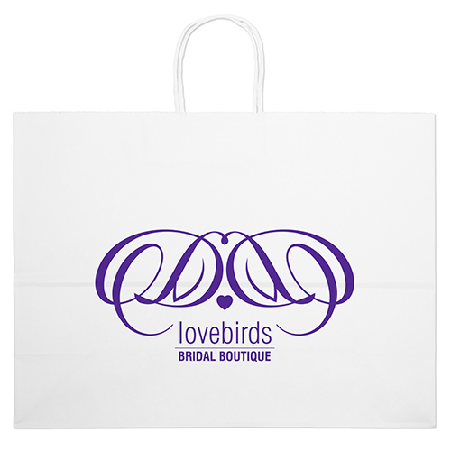 This popular white kraft-paper shopper is functional, affordable, and includes matching twisted paper handles and serrated cut top.Imprint Details